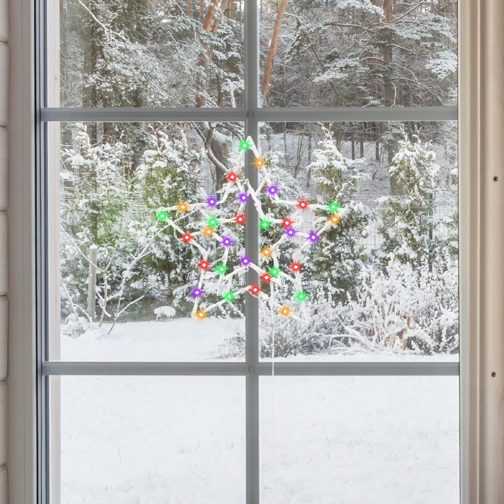 Ez a dekoráció 35 db Ø5mm színes LED-del van felszerelve, amelyek hangulatos, ünnepi fényt árasztanak. A 1,5 méteres fehér tápkábel az alján helyezkedik el, így könnyen csatlakoztatható az áramforráshoz anélkül, hogy zavaró lenne. A termék mérete 33 x 28 cm, így ideális méretű, hogy bármelyik ablakban elhelyezze.
