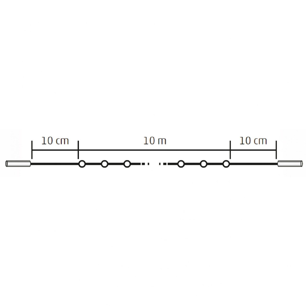 Ez a lenyűgöző 10 méter hosszú fényfüzér 100 darab melegfehér LED-del rendelkezik, amelyek kellemes hangulatot teremtenek a környezetében. A fényfüzér állófényű, így nem kell aggódnia a villogó vagy pulzáló fényektől. A fekete vezeték diszkrét és elegáns megjelenést kölcsönöz a dekorációnak.