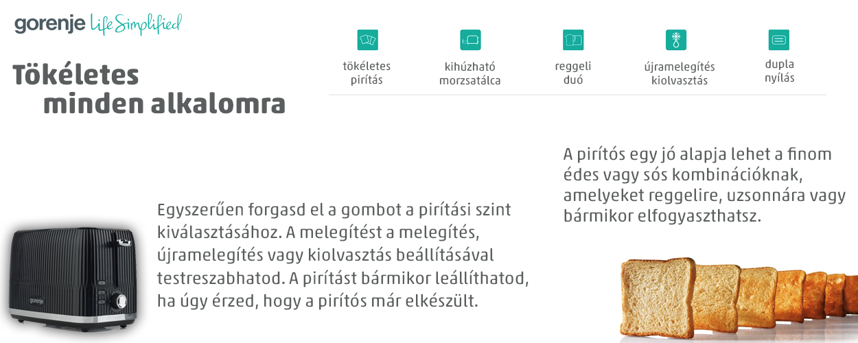 Válassza a Gorenje T850DPB kenyérpirítót, és élvezze a frissen pirított, ropogós kenyér ízét minden nap! ????