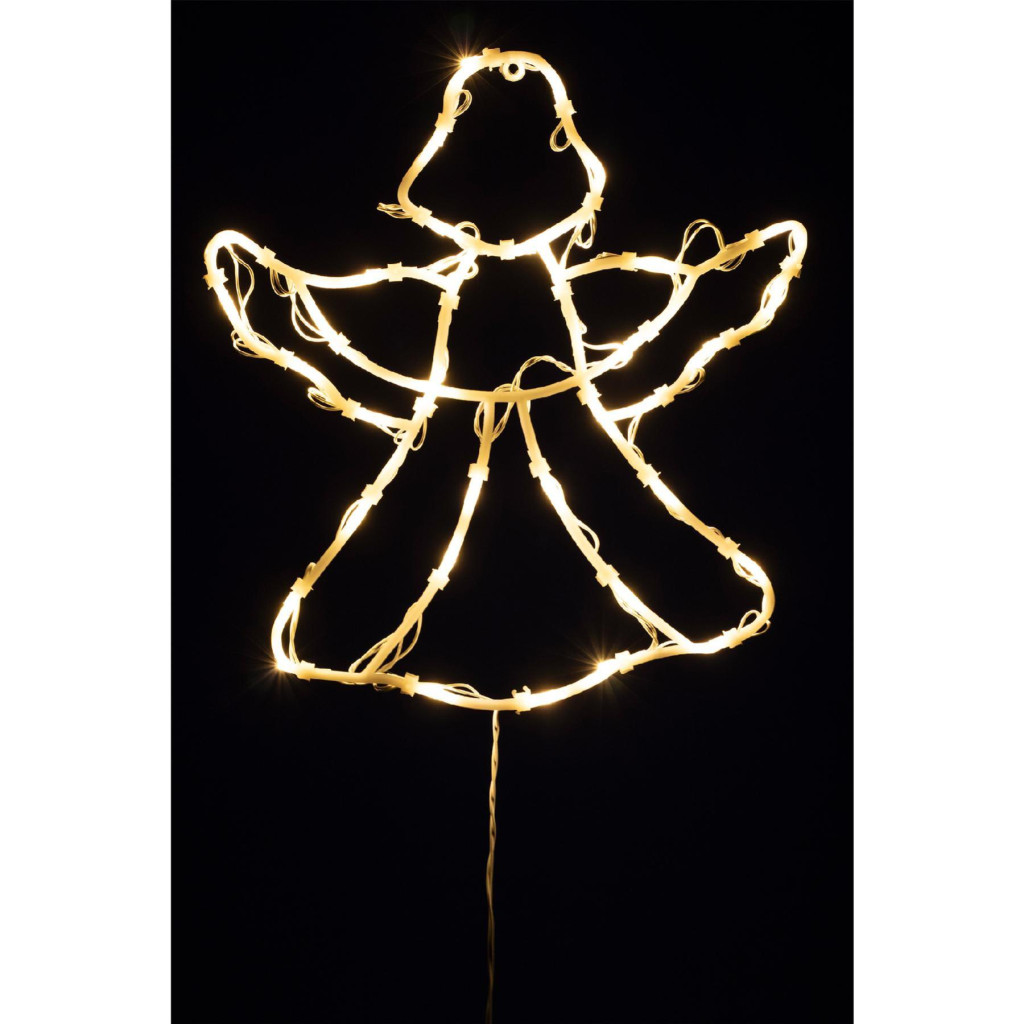 Ez a 30 x 33 cm-es angyalformájú dísz 35 darab melegfehér LED-del világít, melyek finoman szórják a fényt. A meleg fényt kibocsátó LED-ek kellemes, meghitt légkört teremtenek, amely tökéletesen illik az adventi időszakhoz.