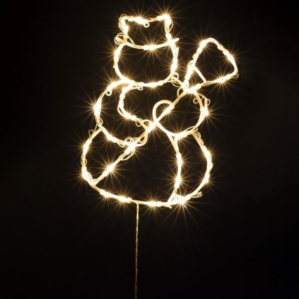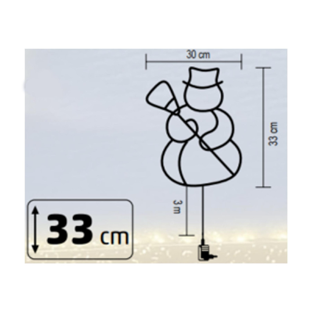 Központi eleme egy mosolygós hóember forma, amelyet 35 db melegfehér LED világít meg. A fehér vezetékdiszkréten simul a környezetébe. Kültéri és beltéri használatra egyaránt alkalmas, így ablakon, teraszajtón vagy belső térben is elhelyezhető.